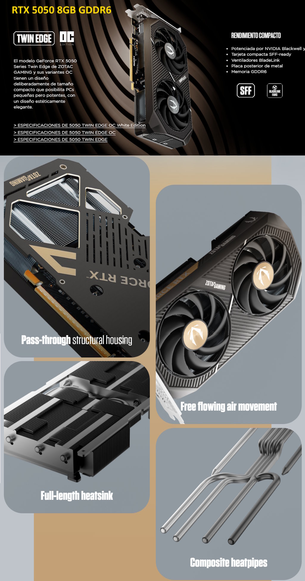 - Tarjeta de Video Nvidia RTX 5050 8GB GDDR6 2 Ventiladores